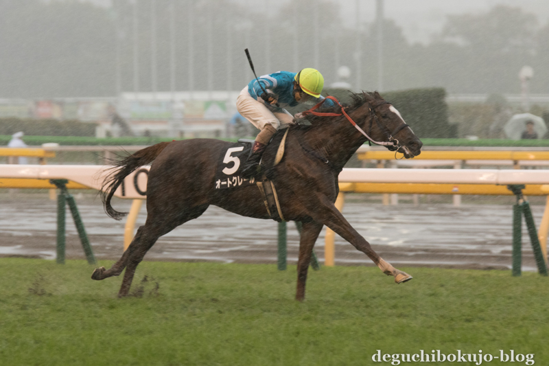ヴィクトリアマイルで心房細動を起こし休養していたオートクレールですが、本日土砂降りの中の復帰戦、見事勝利しました
